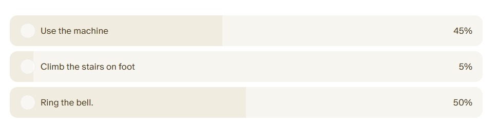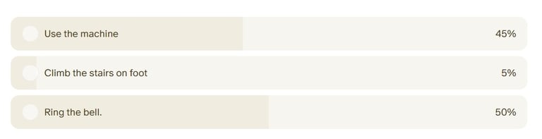 Upon ascending the dim stairs you find a room with two doors.